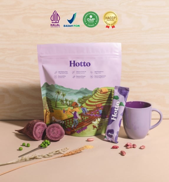 Kini hadir Hotto Purto, minuman multigrain dengan ubi ungu yang diformulasikan khusus untuk menjadi Pilihan Praktis untuk memulai pola makan sehat secara praktis dan penuh nutrisi setiap hari.