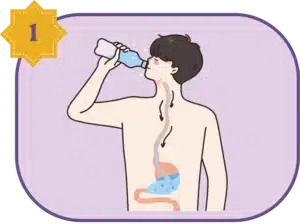 Membasahi kerongkongan dan lambung dengan air putih